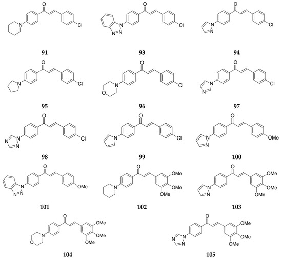 The 4-aminochalcones synthesized by Santos et al. [39] included those shown in Figure 13.