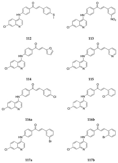 - Hayat, F.; Moseley, E.; Salahuddin, A.; Van Zyl, R.L.; Azam, A. Antiprotozoal activity of chloroquinoline based chalcones. Eur. J. Med. Chem. 2011, 46, 1897–1905. [Google Scholar] [CrossRef]