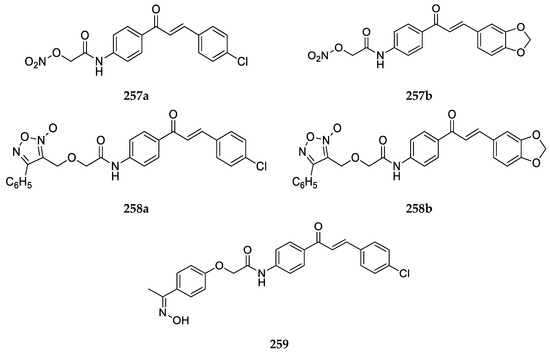 - Mourad, M.A.; Abdel-Aziz, M.S.; Abuo-Rahma, G.E.-D.A.; Farag, H.H. Design, synthesis and anticancer activity of nitric oxide donating/chalcone hybrids. Eur. J. Med. Chem. 2012, 54, 907–913. [Google Scholar] [CrossRef]