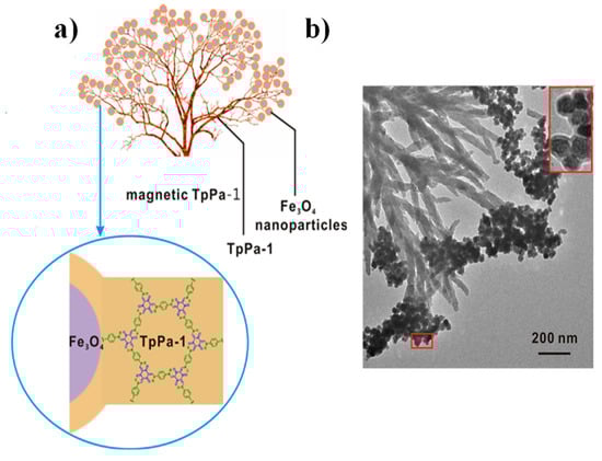 - He, S.; Zeng, T.; Wang, S.; Niu, H.; Cai, Y. Facile synthesis of magnetic covalent organic framework with three-dimensional bouquet-like structure for enhanced extraction of organic targets. ACS Appl. Mater. Interfaces 2017, 9, 2959–2965. [Google Scholar] [CrossRef]