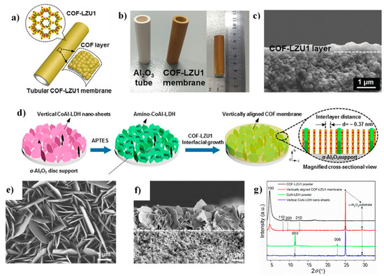 - Fan, H.; Peng, M.; Strauss, I.; Mundstock, A.; Meng, H.; Caro, J. High-Flux Vertically Aligned 2D Covalent Organic Framework Membrane with Enhanced Hydrogen Separation. J. Am. Chem. Soc. 2020, 142, 6872–6877. [Google Scholar] [CrossRef]