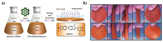 - Biswal, B.P.; Chaudhari, H.D.; Banerjee, R.; Kharul, U.K. Chemically Stable Covalent Organic Framework (COF)-Polybenzimidazole Hybrid Membranes: Enhanced Gas Separation through Pore Modulation. Chem. Eur. J. 2016, 22, 4695–4699. [Google Scholar] [CrossRef] [PubMed]