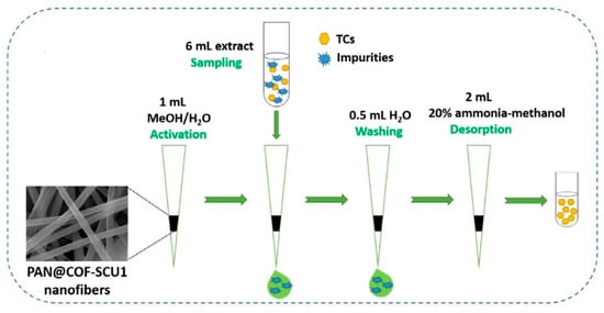 | PAN/TFBPa-1 COF | 47 | Tetracycline antibiotics | Food | PT-SPE | HPLC-PAD | 0.6–3 µg·L‒1 | [105] |