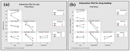 Interactions of PP on average particle size (a) and drug loading (b) of phytosome.