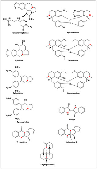Alkaloids are a class of naturally occurring nitrogen-containing compounds that have at least one nitrogen as a heteroatom, usually in a heterocyclic ring—with basic properties—and produce pronounced physiological responses. According to the biosynthetic pathway, alkaloids can be classified into, (1) true alkaloids that originate from amino acids and contain a nitrogen-based heterocyclic ring; (2) proto-alkaloids that also derive from amino acids, but do not contain a nitrogen moiety in a heterocyclic system; (3) pseudoalkaloids that do not originate from amino acids. Currently, more than 8000 natural compounds are classified as alkaloids [4,5].