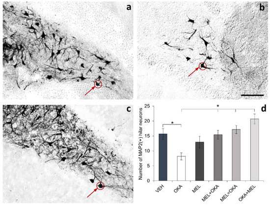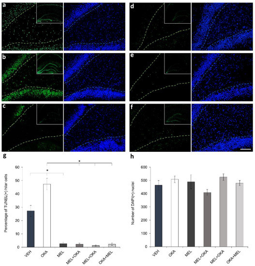 4.4. DNA Integrity Challenged by OKA and Protected by Melatonin in Hilar Cells