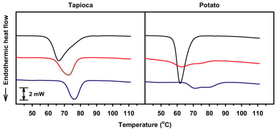- Suriya, M.; Reddy, C.K.; Haripriya, S. Functional and thermal behaviors of heat-moisture treated elephant foot yam starch. Int. J. Biol. Macromol. 2019, 137, 783–789. [Google Scholar] [CrossRef] [PubMed]