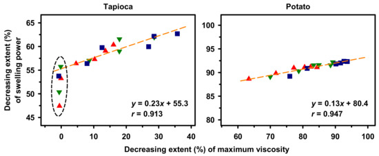2.5. Correlation between Swelling Power and Maximum Viscosity