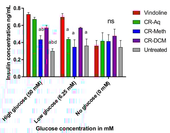 2.7. Effect of Vindoline and the Extracts of C. roseus on Insulin Secretion