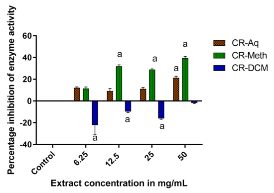 | Alpha Glucosidase | 0.375 mM | 11.31 ± 2.351a | 83.35 ± 0.3 |