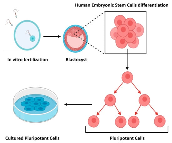 Embryonic Stem Cells (ESCs) were first discovered and characterised in 1981 [], and subsequently isolated from human blastocysts in 1998 []. Decades previously however, Pierce [], and also Stevens and Hummel [], demonstrated that teratocarcinomas contain cells with multi-lineage potential []. These findings were the first steps that led to the isolation of ESCs (Figure 1), and the identification of their extraordinary ability to proliferate indefinitely in vitro and capacity to differentiate into any somatic cell type []. ESCs are pluripotent cells by definition, and drive the formation of all tissues of an embryo. However, as reviewed by Lo et al., 2009 [], the use of human ESCs for research has given rise to numerous ethical and political controversies since it involves the destruction of human embryos. Consequentially, the ethical considerations hamper their use in research.
