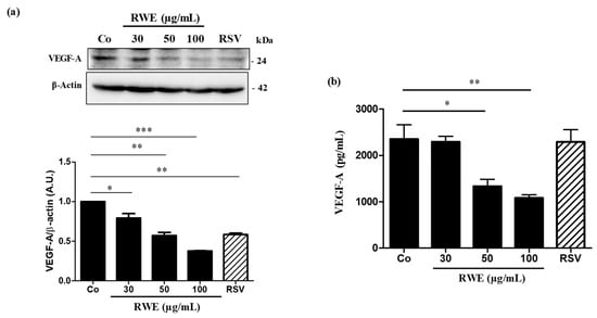 2.3. RWE Prevents VEGF-A Secretion from ARPE-19 Cells and Its Protein Expression