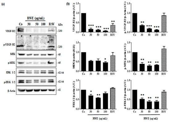 2.2. RWE Prevents VEGF Secretion from ARPE-19 Cells and Its Protein Expression