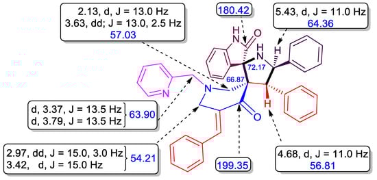 3.2. 4,5-Diphenylpyrrolo(spiro[2.3″]-oxindole)-spiro-[3.3′]-5′-(phenylmethylidene)-1′-N-(pyridinylmethyl)piperidin-4′-one (8a)