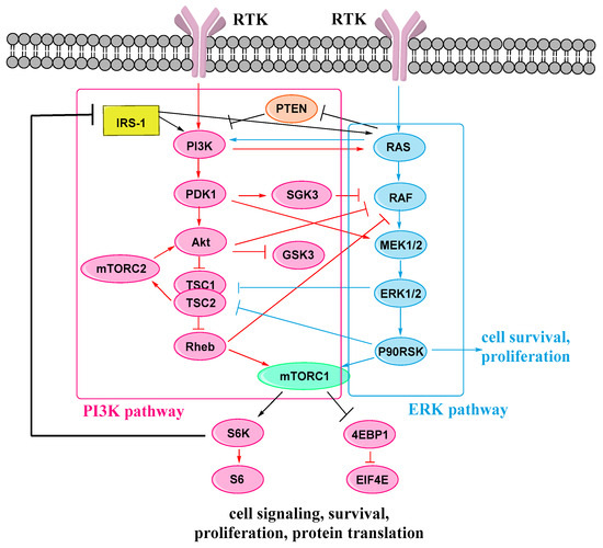 The cross-talk between MAPK/ERK and PI3K/Akt pathways.