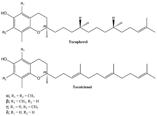 - Szymańska, R.; Nowicka, B.; Trela, A.; Kruk, J. Vitamin E: Structure and forms. In Molecular Nutrition; Patel, V.B., Ed.; Elsevier: Amsterdam, The Netherlands, 2020; pp. 67–90. [Google Scholar] [CrossRef]