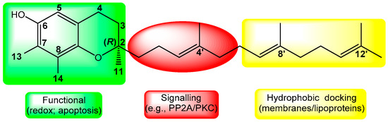 Tocotrienol (T-3) chemical structure and molecular biology of its major structural domains (adapted from [2]).