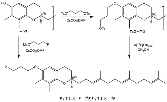 4.2.2. (R)-6-(3-[18F]Fluoropropoxy)-2,7,8-trimethyl-2-(4,8,12-trimethyltrideca-3,7,11-trien-1-yl)-chromane ([18F]F-γ-T-3, Scheme 1)