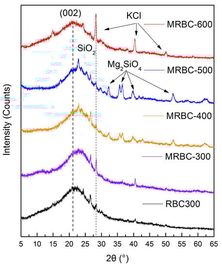 XRD patterns of RBC300 and MRBCs.