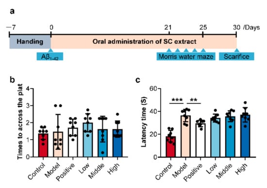 2.1. SC-Extract Regulated the Learning and Memory Impairment Induced by Aβ1–42 in Rats