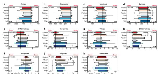 2.4. Calculated and Compared the SCFAs Concentrate in Serum and Colon Content Samples