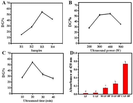 2.1.1. Effects of LF-BP Mass Ratio, Ultrasound Power and Ultrasound Time