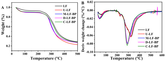 2.1. Effect of Ultrasound Treatments on the Graft Reaction between LF and BP