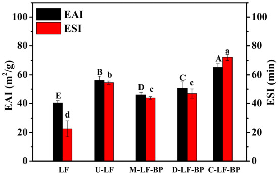 - Xu, C.H.; Yu, S.J.; Yang, X.Q.; Qi, J.R.; Lin, H.; Zhao, Z.G. Emulsifying properties and structural characteristics of beta-conglycinin and dextran conjugates synthesised in a pressurised liquid system. Int. J. Food Sci. Technol. 2010, 45, 995–1001. [Google Scholar] [CrossRef]
