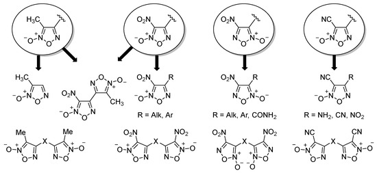 - Fershtat, L.L.; Makhova, N.N. 1,2,5-Oxadiazole-Based High-Energy-Density Materials: Synthesis and Performance. ChemPlusChem 2020, 85, 13–42. [Google Scholar] [CrossRef]