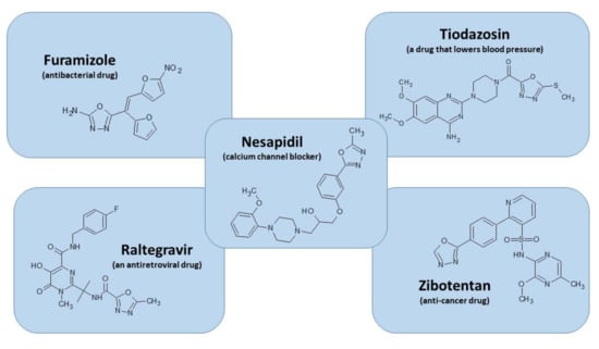- Schlecker, R.; Thieme, P.C. The synthesis of antihypertensive 3-(1,3,4-oxadiazol-2-yl)phenoxypropanolahines. Tetrahedron 1998, 44, 3289–3294. [Google Scholar] [CrossRef]