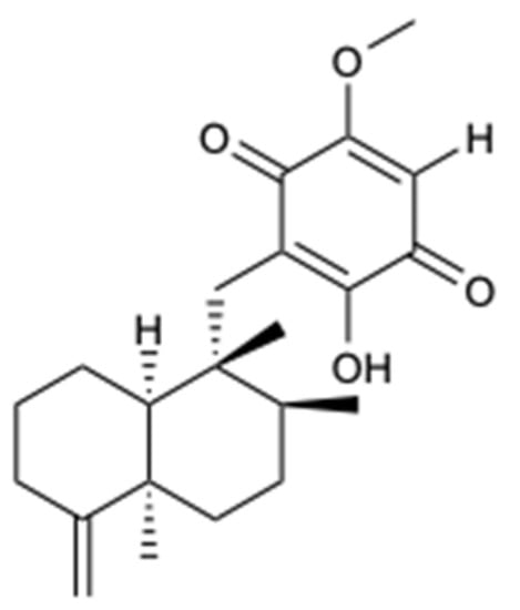 - Kumar, R.; Subramani, R.; Aalbersberg, W. Three bioactive sesquiterpene quinones from the Fijian marine sponge of the genus Hippospongia. Nat. Prod. Res. 2013, 27, 1488–1491. [Google Scholar] [CrossRef]