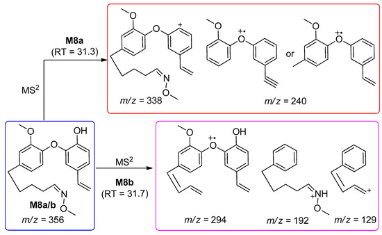 MS2 fragmentation pattern of metabolite M8 (m/z 356).