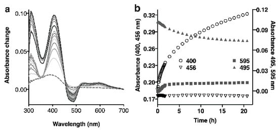 2.3.2. Spectral Changes Distinguish Flavin Reduction from Adduct Formation