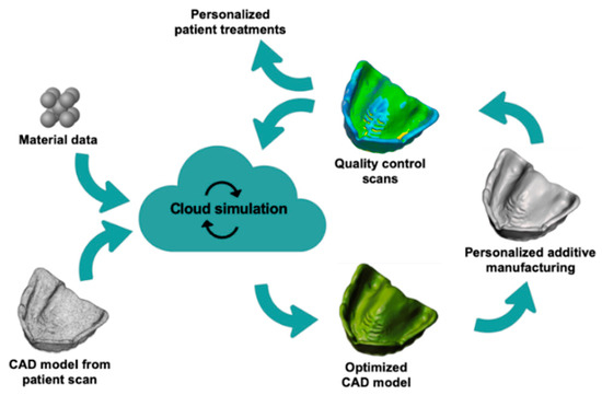 Implemented workflow for producing personalized medical tools through additive manufacturing and integrated self-learning simulation to overcome material-based warpage challenges. CAD: computer-aided design.