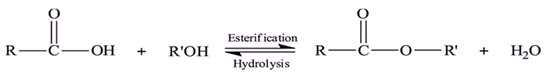 Esterification reaction of FFA with alcohol.