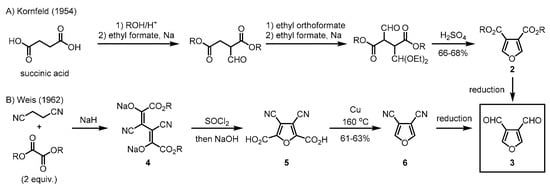 Syntheses of 3,4-dicarbaldehyde furan 3.