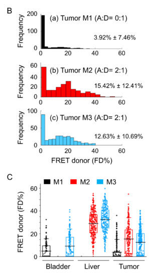 - Abe, K.; Zhao, L.; Periasamy, A.; Intes, X.; Barroso, M. Non-invasive In Vivo imaging of near infrared-labeled transferrin in breast cancer cells and tumors using fluorescence lifetime FRET. PLoS ONE 2013, 8, e80269. [Google Scholar] [CrossRef]