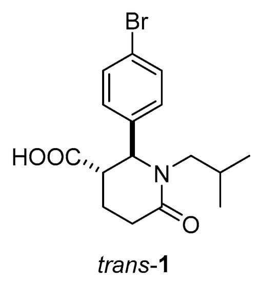 4.2. Synthesis of 2-(4-Bromophenyl)-1-isobutyl-6-oxopiperidin-3-carboxylic Acid (trans-1)