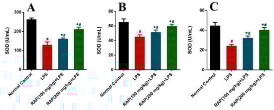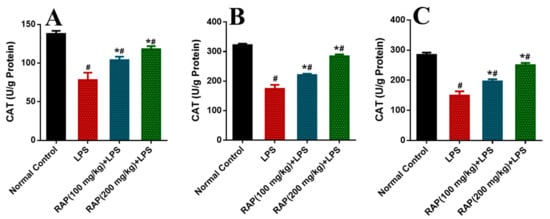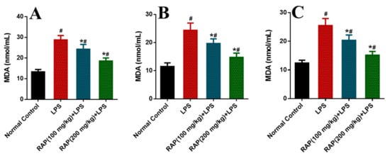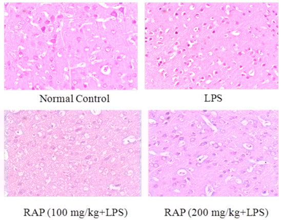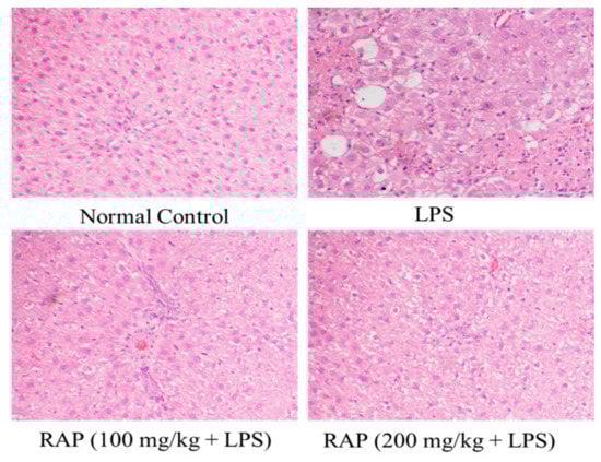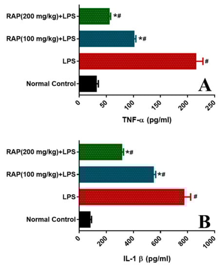 | Parameters | Normal Control | LPS 10 mg/kg | RAP 100 mg/kg | RAP200 mg/kg |