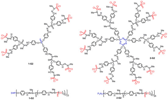 - Launay, N.; Slany, M.; Caminade, A.M.; Majoral, J.P. Phosphorus-containing dendrimers. Easy access to new multi-difunctionalized macromolecules. J. Org. Chem. 1996, 61, 3799–3805. [Google Scholar] [CrossRef]