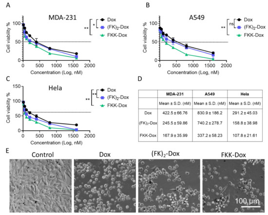 2.2. In Vitro pH-Dependent Dox Release