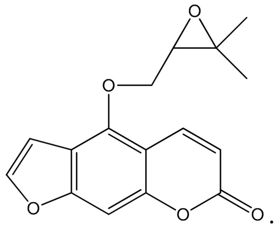 Angelica dahurica (Umbelliferae) is an indigenous plant mainly distributed in Korea, China, and Russia. The root of Angelica dahurica has been used for the control of hysteria, bleeding, menstrual disorder, neuralgia and pain as a traditional medicine in Korea. Previous phytochemical studies revealed that the plant is a rich source of furanocoumarins, including oxypeucedanin [6]. Oxypeucedanin (OPD) (Figure 1), a coumarin-type major constituent of the root of Angelica dahurica, has been reported to have several biological activities, including anti-mutagenic, uterus contraction, blood pressure increase, and cytotoxic and antiproliferative effects against cancer cells [7,8,9].