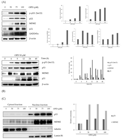 2.3. Effects of OPD on the Regulation of p53-associated Signaling Pathways in SK-Hep-1 Cells