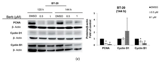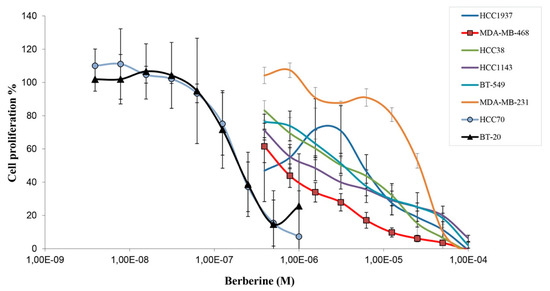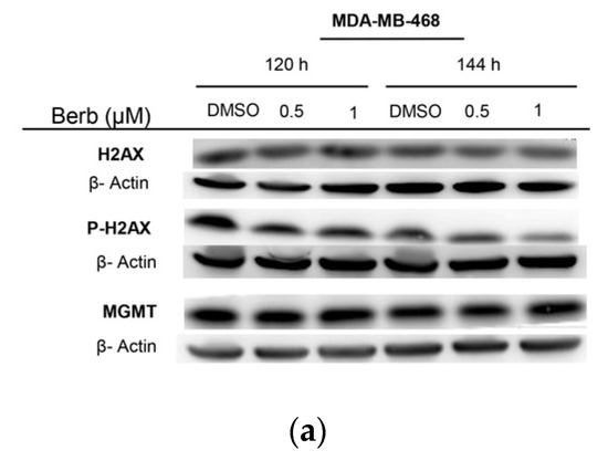 - Lin, Y.S.; Chiu, Y.C.; Tsai, Y.H.; Tsai, Y.F.; Wang, J.Y.; Tseng, L.M.; Chiu, J.H. Different mechanisms involved in the berberine-induced antiproliferation effects in triple-negative breast cancer cell lines. J. Cell Biochem. 2019, 120, 13531–13544. [Google Scholar] [CrossRef]