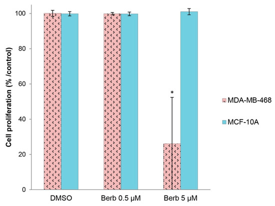 2.5. Berberine Does not Affect the Viability of “Normal” Human Breast MCF-10A Cells