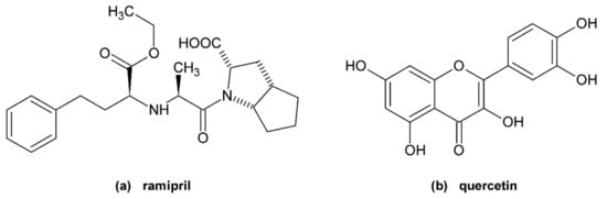 Structures of (a) ramipril and (b) quercetin.