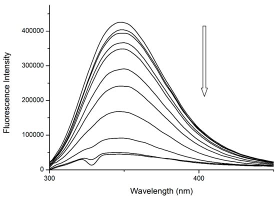 The binding of quercetin has been already studied in detail. Previous publications by our research team confirmed that Q binds to the close proximity of Trp214, then quenches its fluorescence by static quenching (Figure 4) and forms a fluorescent complex with Trp214 [13,14].