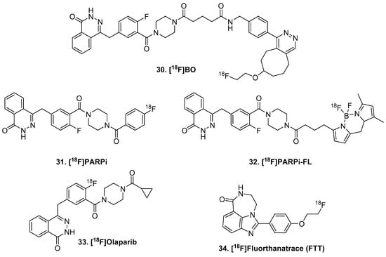 - Zhou, D.; Chu, W.; Xu, J.; Jones, L.A.; Peng, X.; Li, S.; Chen, D.L.; Mach, R.H. Synthesis, [18F] radiolabeling, and evaluation of poly (ADP-ribose) polymerase-1 (PARP-1) inhibitors for in vivo imaging of PARP-1 using positron emission tomography. Bioorg. Med. Chem. 2014, 22, 1700–1707. [Google Scholar] [CrossRef]