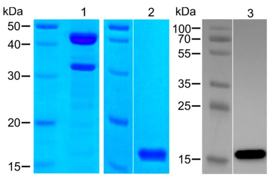 - Spahn, C.; Wermann, M.; Eichentopf, R.; Hause, G.; Schlenzig, D.; Schilling, S. Purification of recombinant Aβ(1–42) and pGlu-Aβ(3–42) using preparative SDS-PAGE. Electrophoresis 2017, 38, 2042–2049. [Google Scholar] [CrossRef]