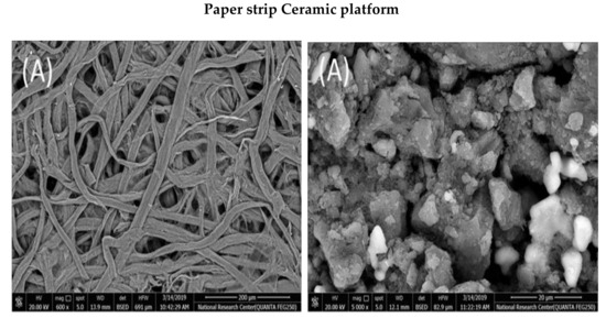 The SEM images of the paper and ceramic substrates were examined using the scanning electron microscope (SEM) (JOEL-JSM-IT500HR, Osaka, Japan).